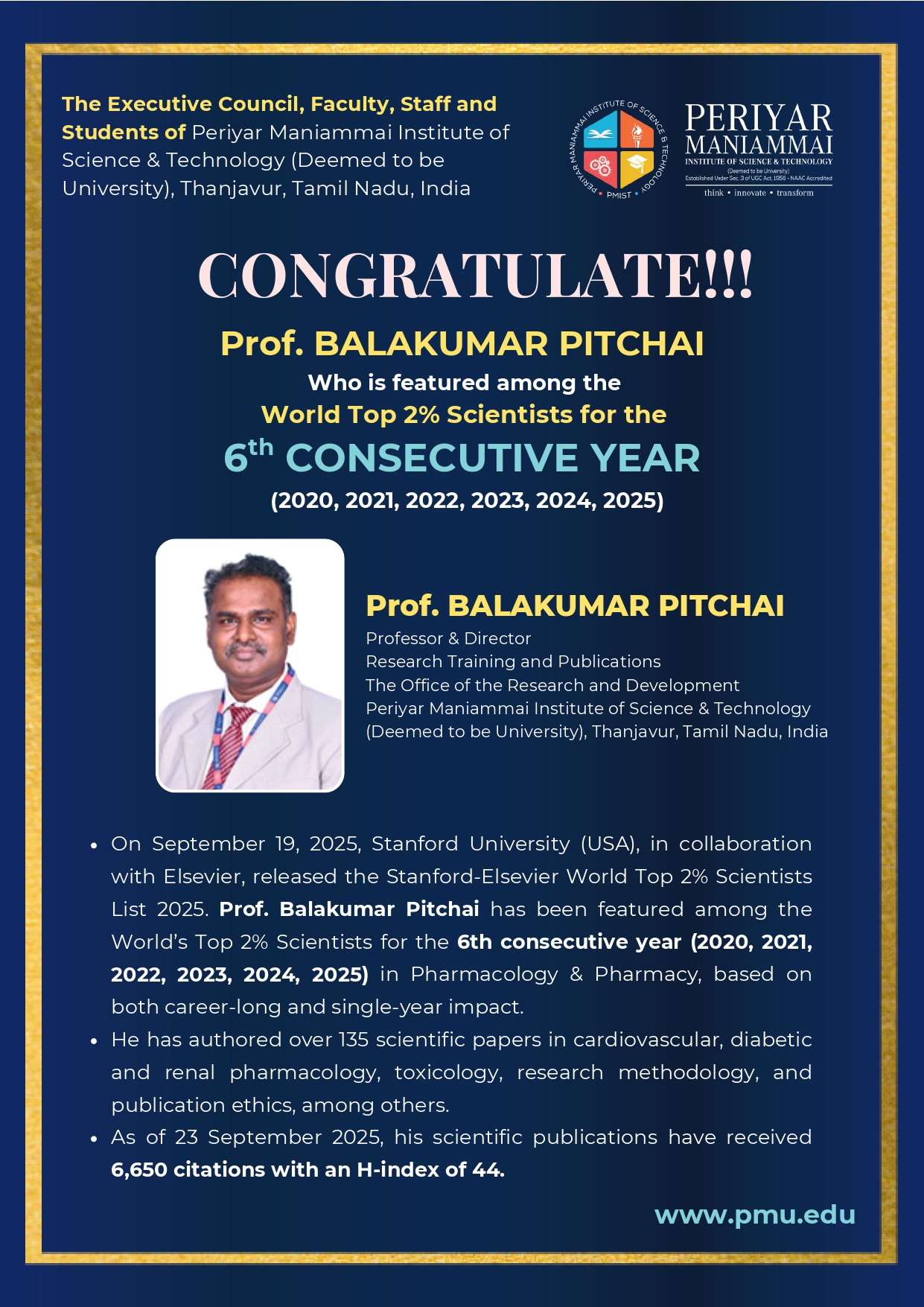 CONGRATULATE !!! Prof. BALAKUMAR PITCHAI 6 CONSECUTIVE YEAR