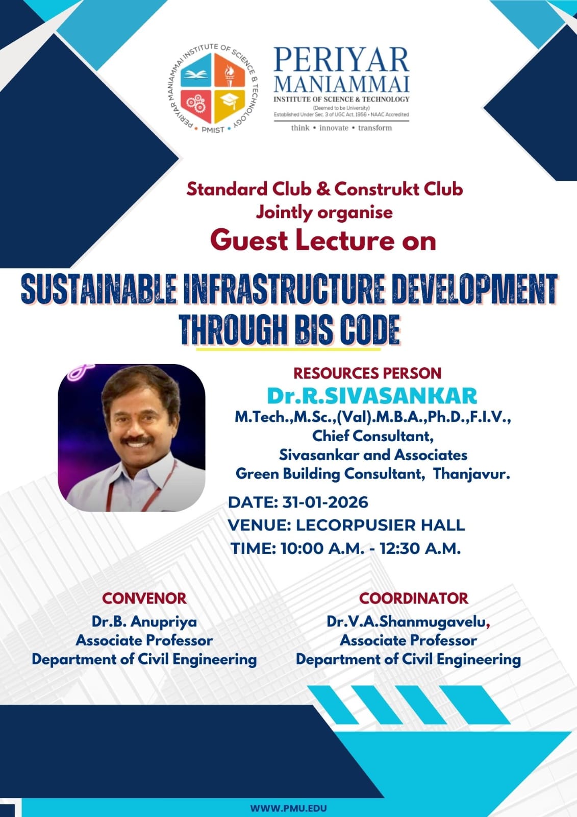 Standard Club & Construkt Club Jointly organise Guest Lecture on SUSTAINABLE INFRASTRUCTURE DEVELOPMENT THROUGH BIS CODE