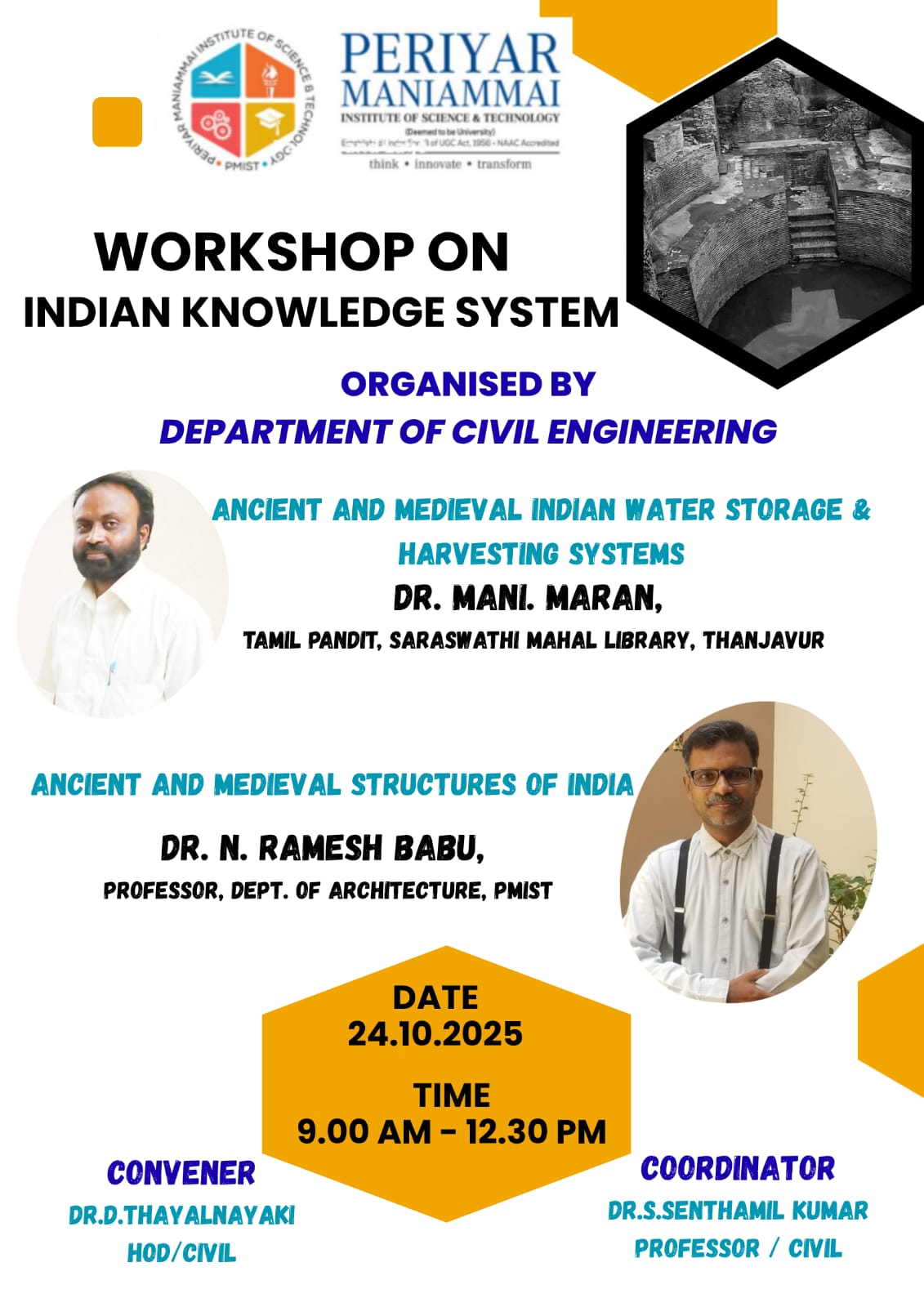 WORKSHOP ON INDIAN KNOWLEDGE SYSTEM ORGANISED BY DEPARTMENT OF CIVIL ENGINEERING