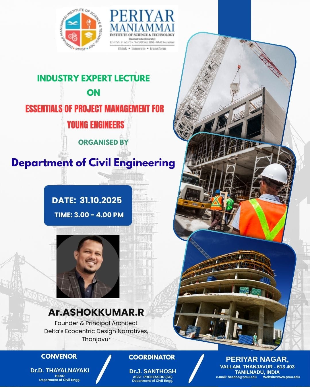 INDUSTRY EXPERT LECTURE ON ESSENTIALS OF PROJECT MANAGEMENT FOR YOUNG ENGINEERS ORGANISED BY Department of Civil Engineering