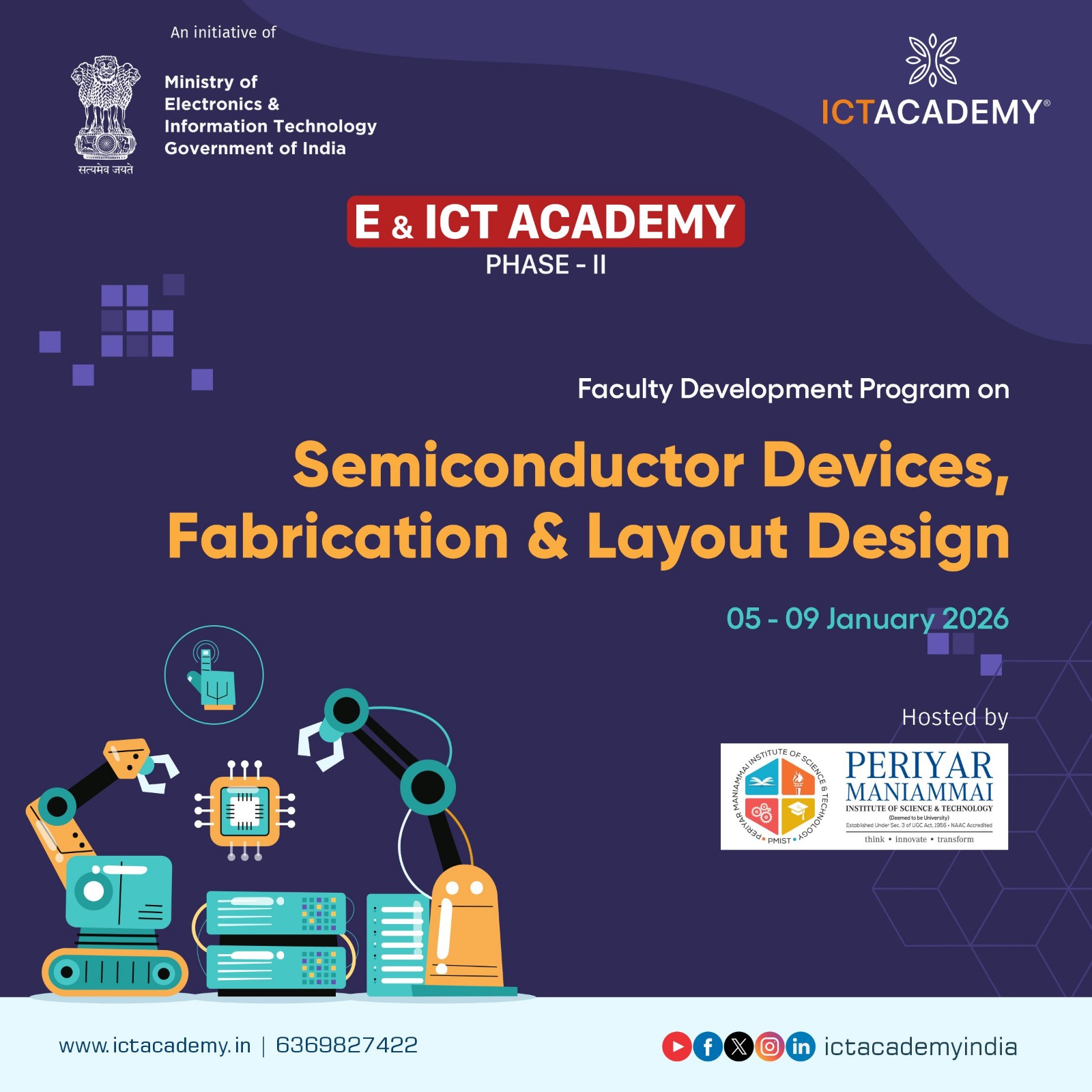 ICT Academy, in association with the *Ministry of Electronics and Information Technology (MeitY), Govt. of India*, is organizing a *5-Day Faculty Development Program (FDP)* on: