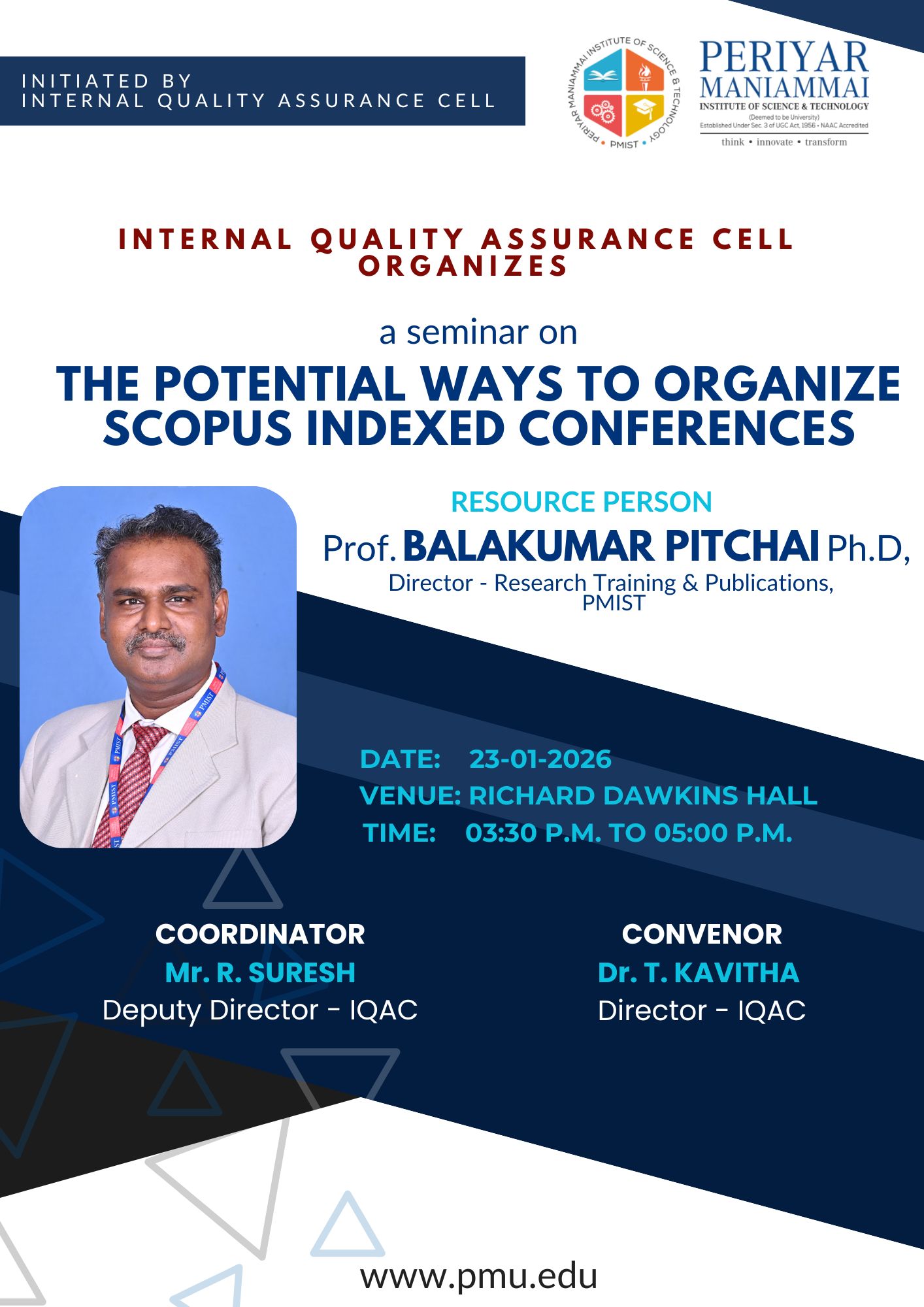 INTERNAL QUALITY ASSURANCE CELL ORGANIZES a seminar onTHE POTENTIAL WAYS TO ORGANIZE SCOPUS INDEXED CONFERENCES
