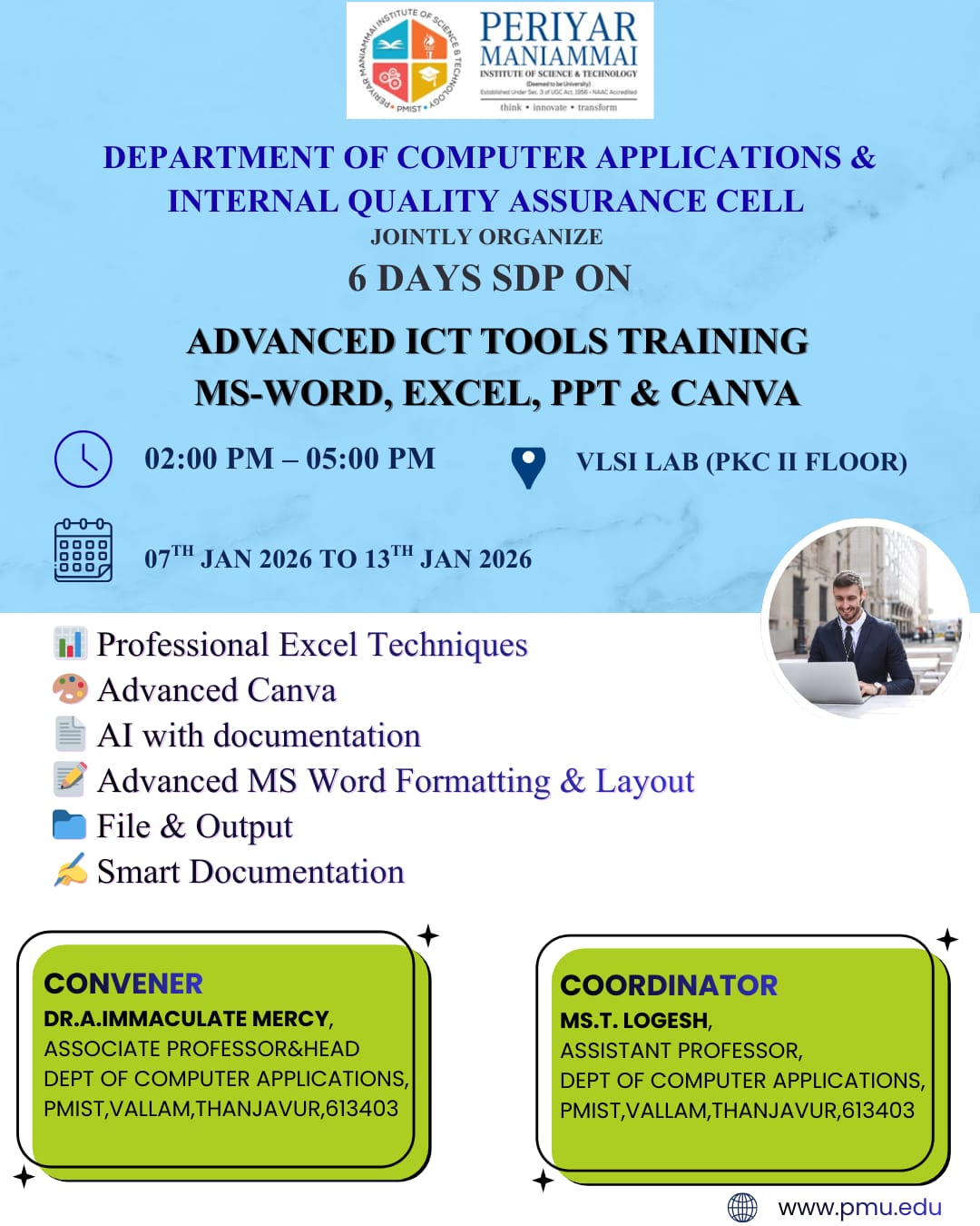 6 DAYS SDP ON ADVANCED ICT TOOLS TRAINING MS-WORD, EXCEL, PPT & CANVA