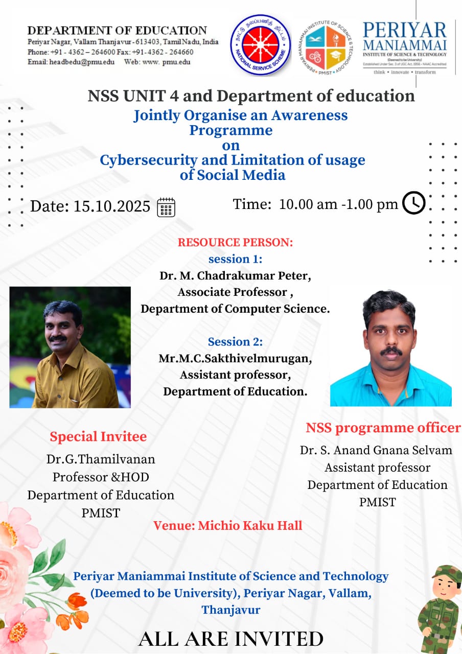 Department of Education, Periyar Maniammai Institute of Science &Technology,(Deemed to be University), Thanjavur and Arjun Singh Library Jointly organizing a Two Day 3rd International Conference on Sustainable Developments in Teacher Education & Library and Information Science (SDTELIS - 2022) on 25.03.2022 to 26.03.2022.