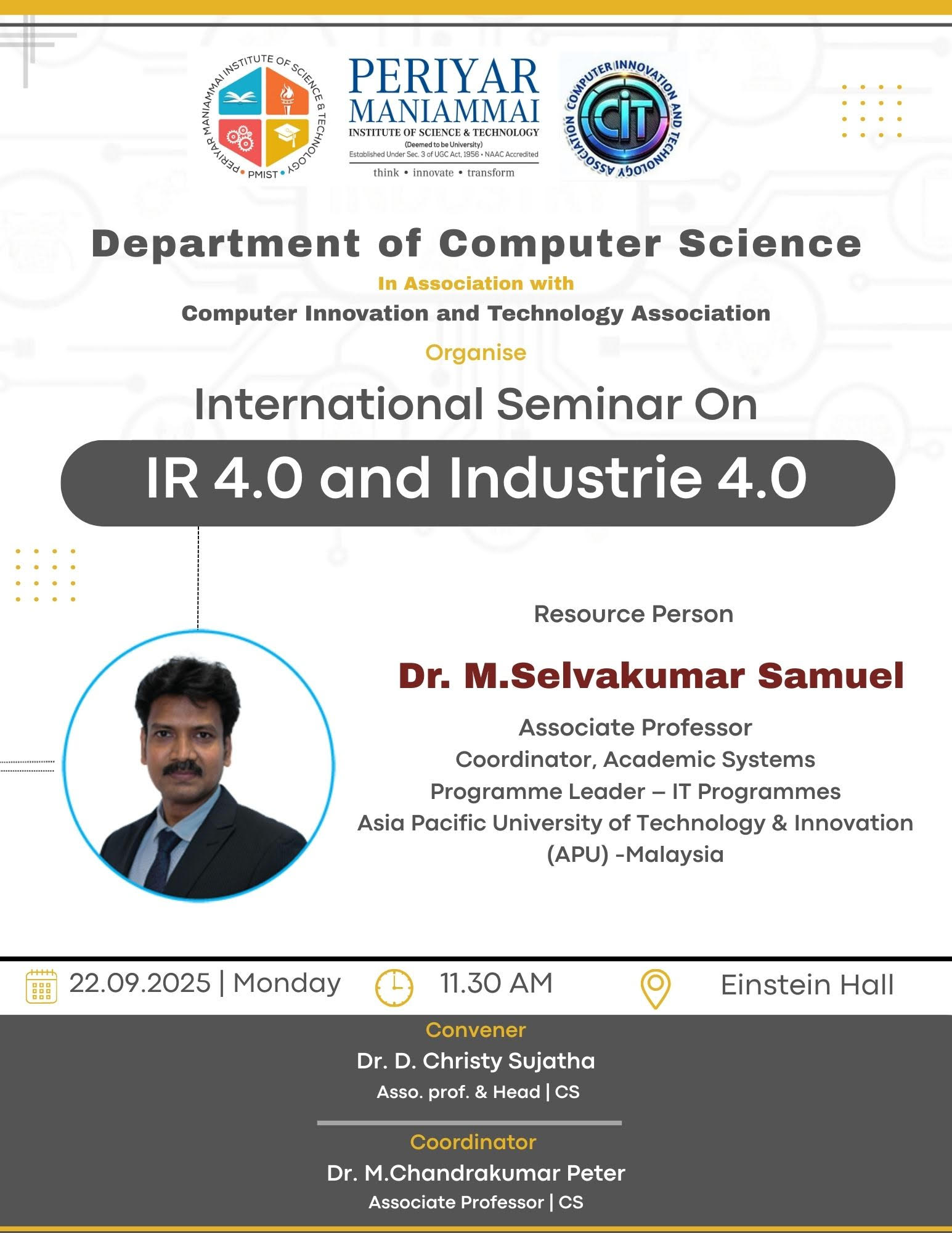 Department of Computer Science In Association with Computer Innovation and Technology Association Organise an International Seminar On IR 4.0 and Industrie 4.0
