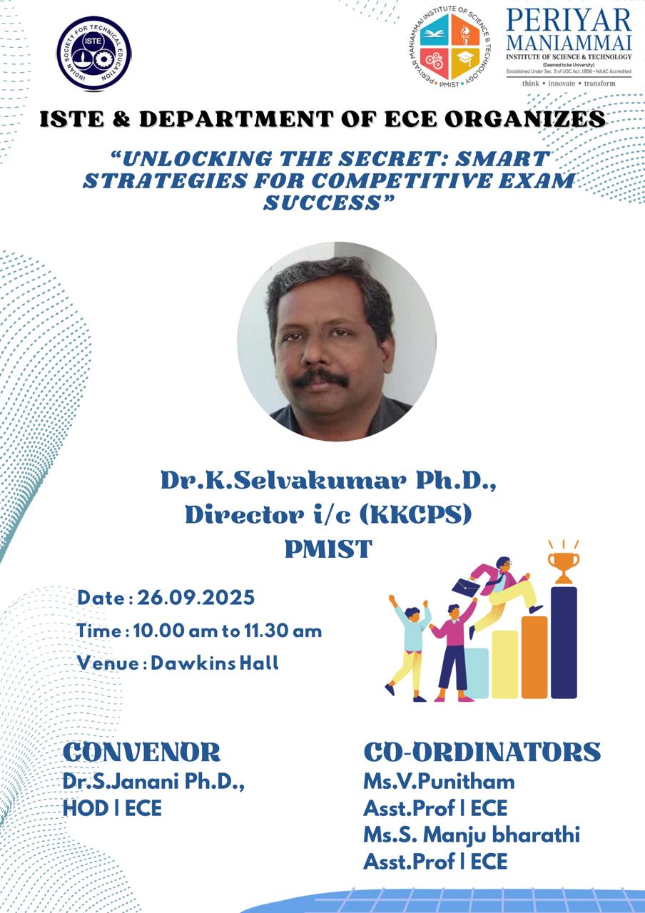 ISTE & DEPARTMENT OF ECE ORGANIZES "UNLOCKING THE SECRET: SMART STRATEGIES FOR COMPETITIVE EXAM SUCCESS"