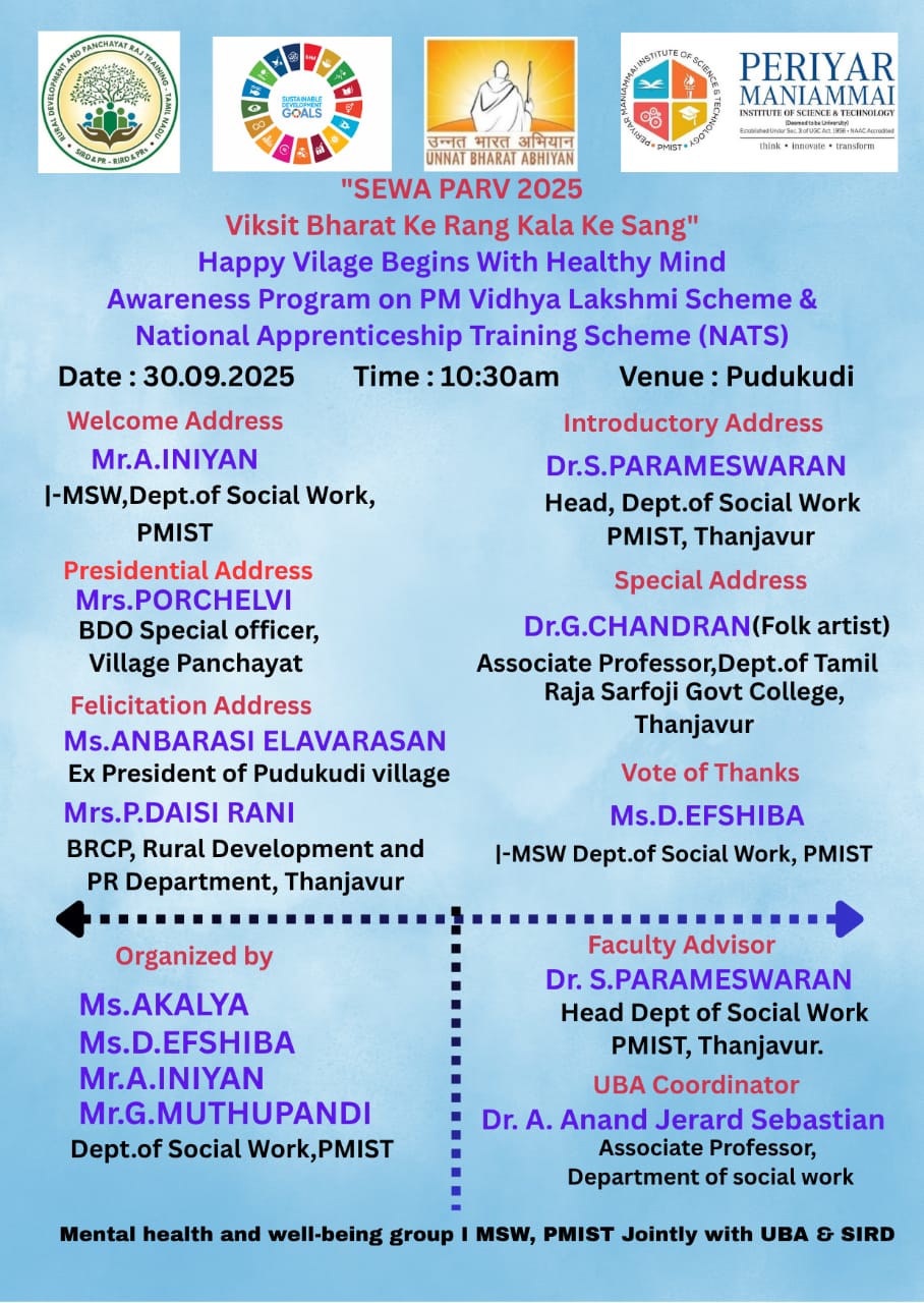 Viksit Bharat Ke Rang Kala Ke Sang" Happy Village Begins With Healthy Mind Awareness Program on PM Vidhya Lakshmi Scheme & National Apprenticeship Training Scheme (NATS)