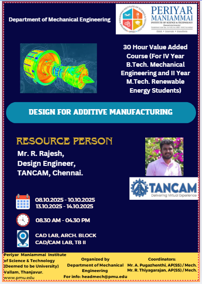 30-Hour Value Added Course (For IV Year B.Tech. Mechanical Engineering and II Year M.Tech. Renewable Energy Students)