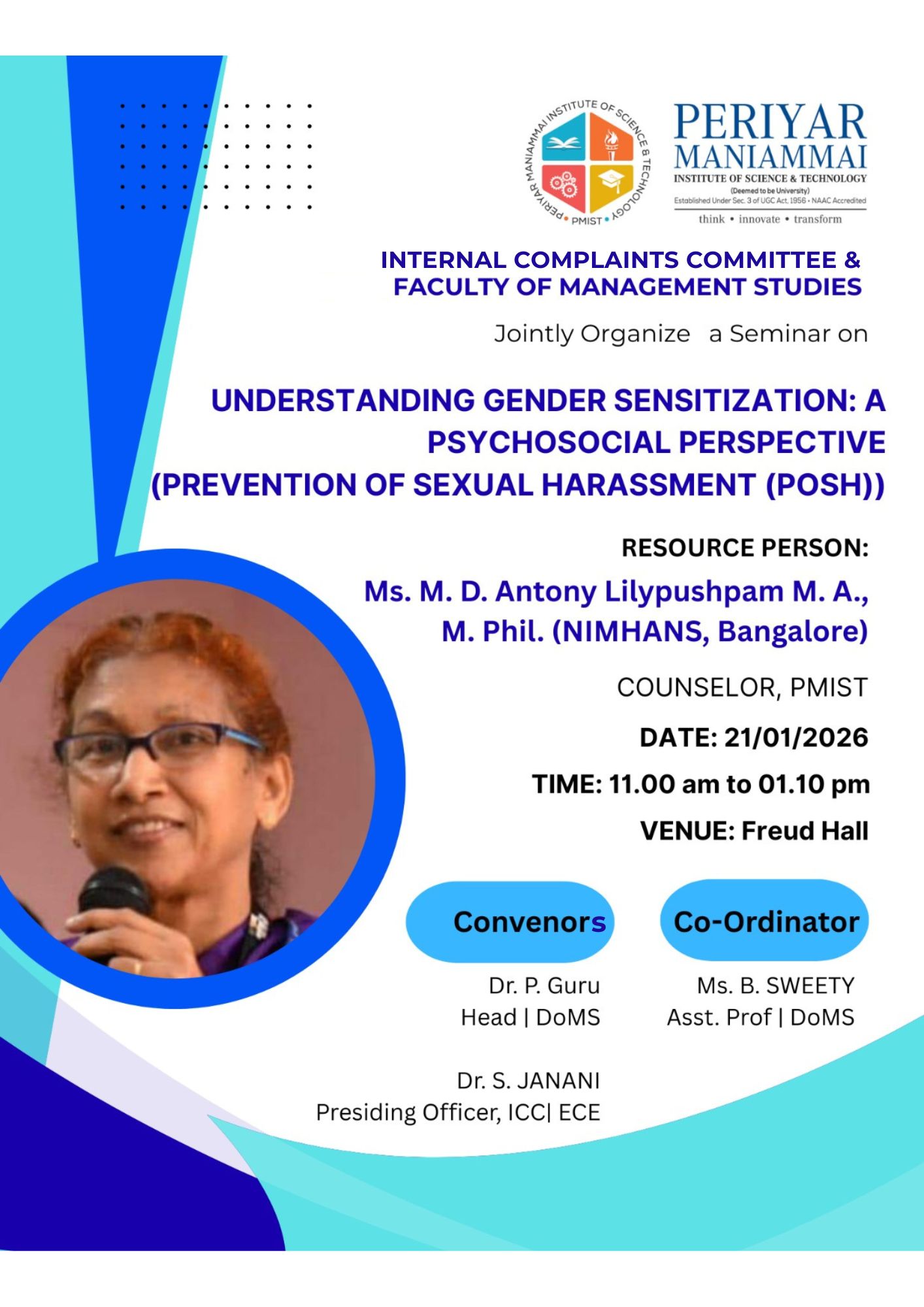 A SEMINAR ON UNDERSTANDING GENDER SENSITIZATION: A PSYCHOSOCIAL PERSPECTIVE (PREVENTION OF SEXUAL HARASSMENT (POSH))