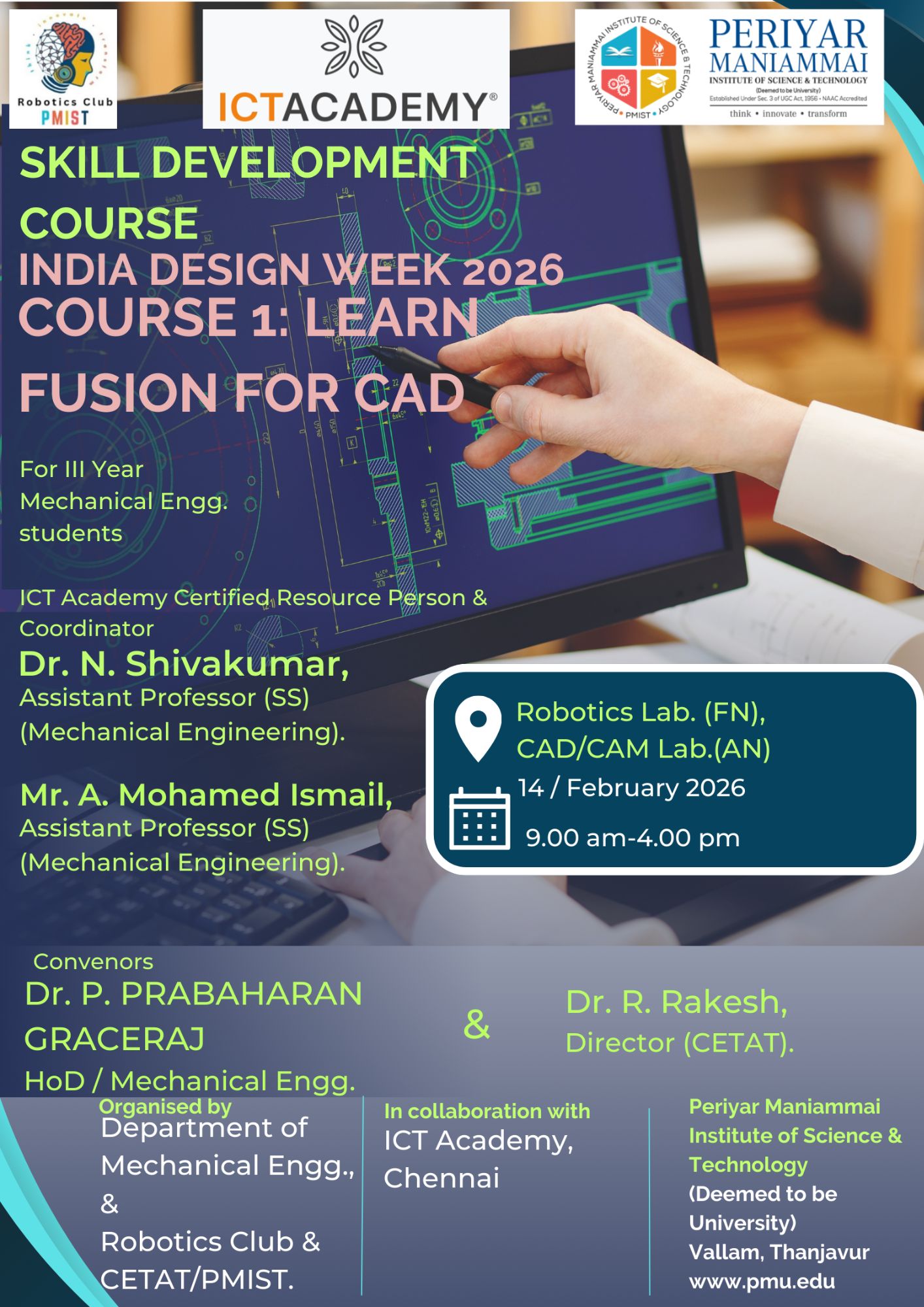 SKILL DEVELOPMENT COURSE INDIA DESIGN WEEK 2026 COURSE 1: LEARN FUSION FOR CAD