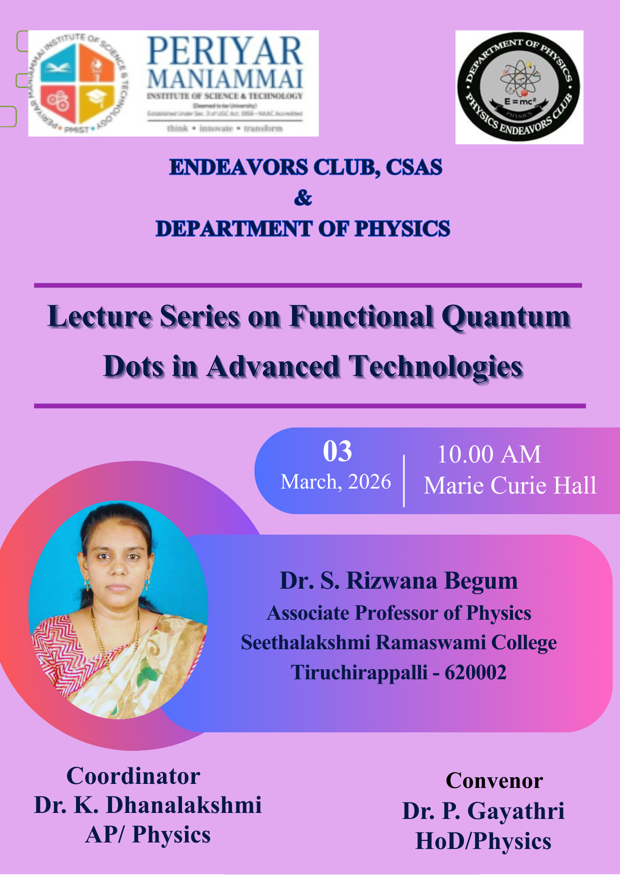 Lecture Series on Functional Quantum Dots in Advanced Technologies