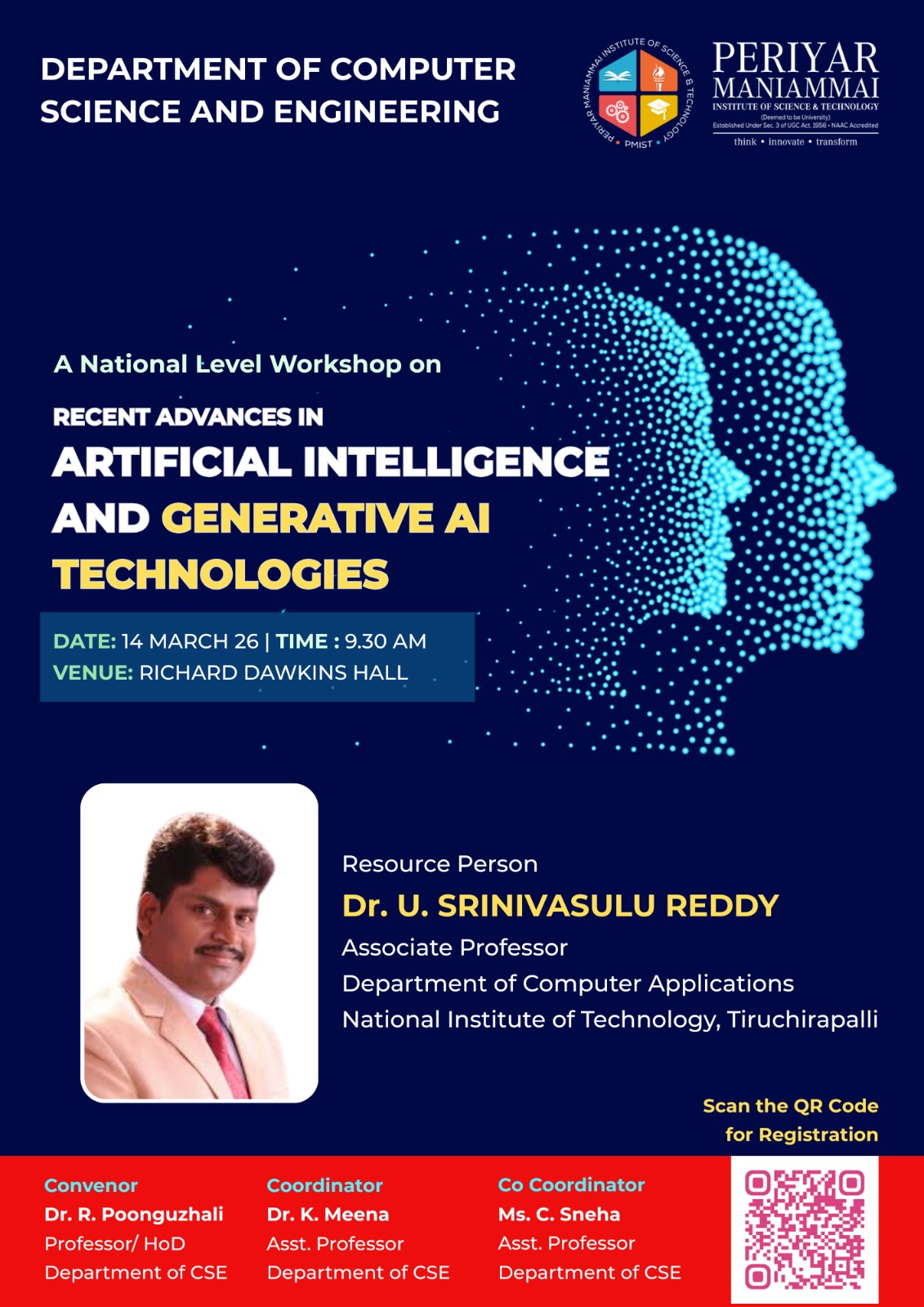 A National Level Workshop on RECENT ADVANCES IN ARTIFICIAL INTELLIGENCE AND GENERATIVE AI TECHNOLOGIES