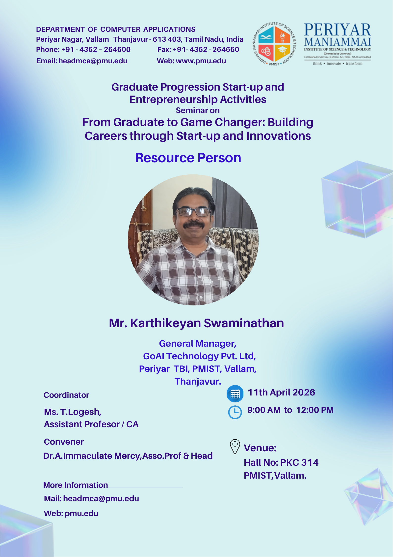 Seminar on From Graduate to Game Changer: Building Careers through Start-up and Innovations