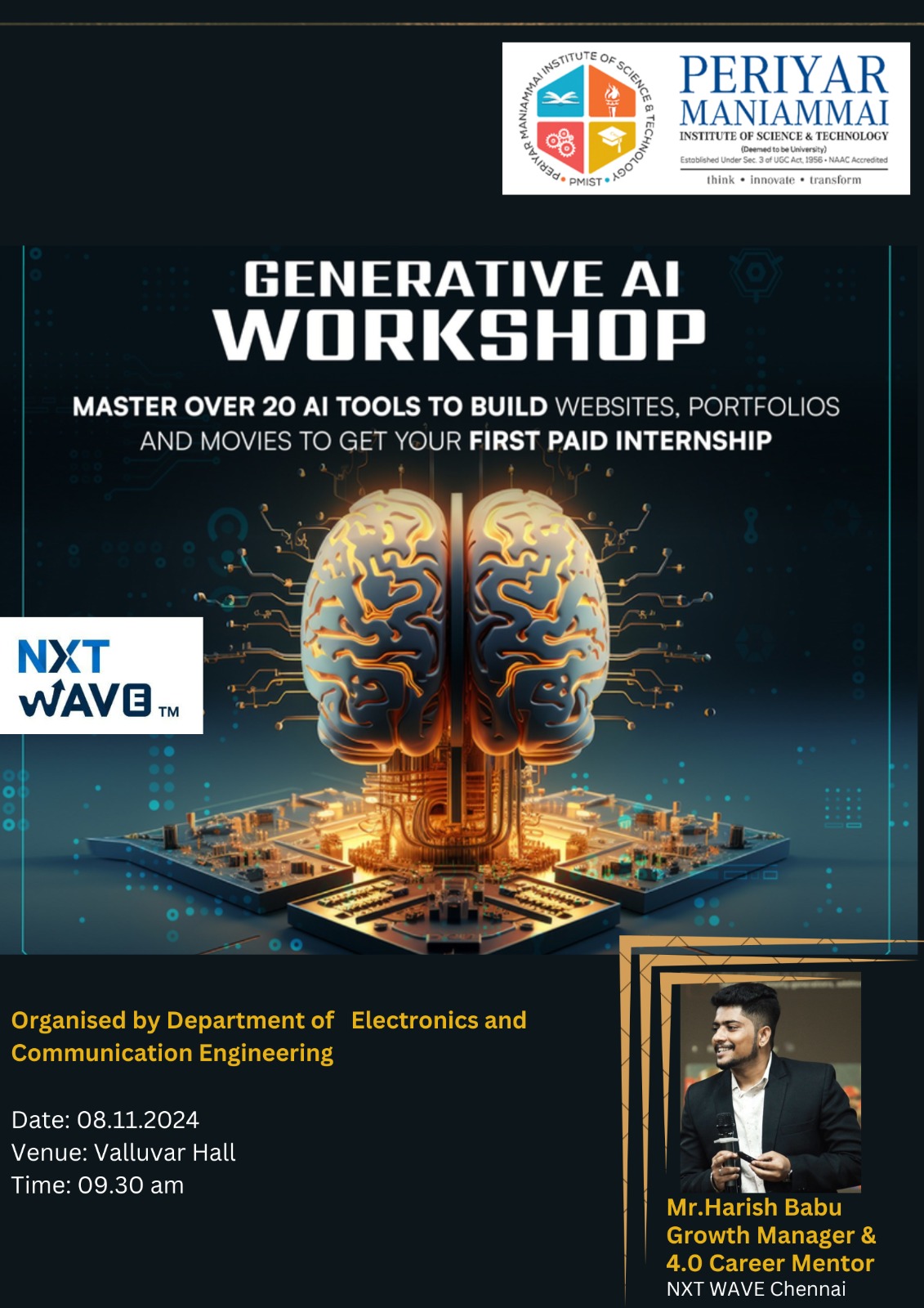 Department Of Electronics Communication Engineering "Generative AI Workshop". Master over 20Ai Tools to Build Website, Portfolios and Movies To Get Your First Paid Internship.